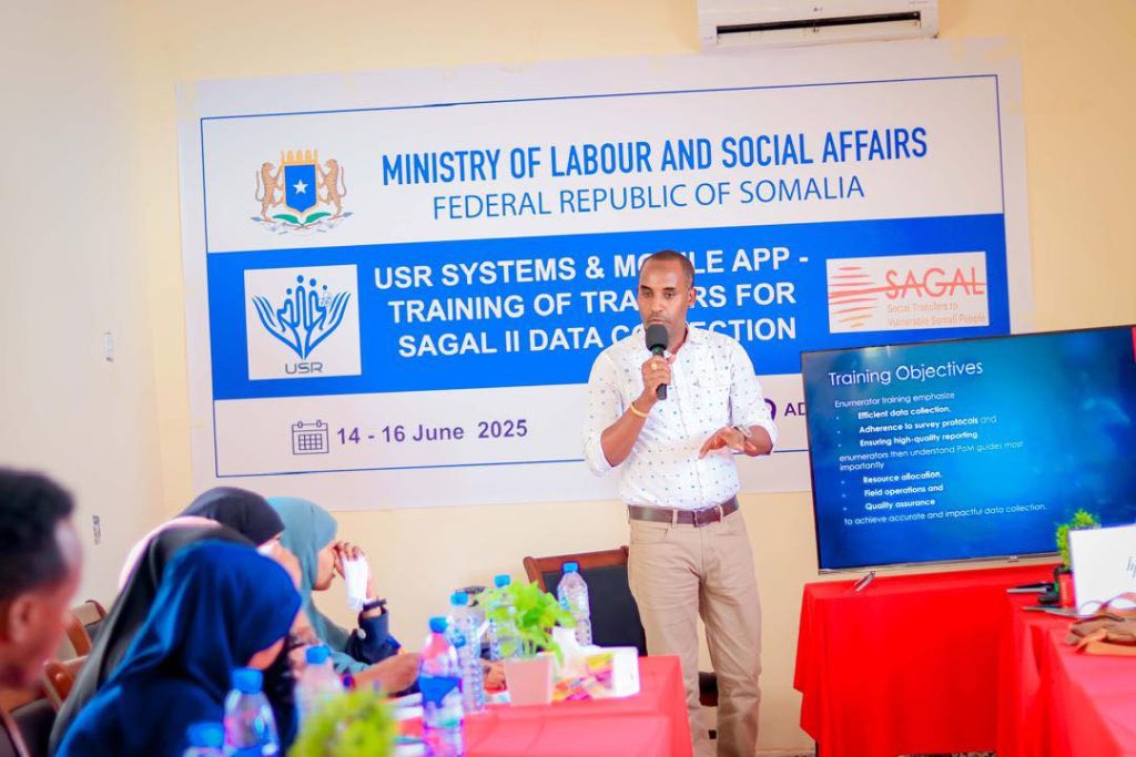 Tababarkan ayaa qeyb ka ah hirgelinta wajiga labaad ee barnaamijka SAGAL II, oo ah dadaal ballaaran oo dowladda Federaalka Soomaaliya ku horumarinayso nidaamka ilaalinta bulshada. Ujeeddada ugu weyn waa in la dhiso nidaam hufan oo lagu ururiyo, kaydiyo, isla markaana lagu falanqeeyo xogta dadka u baahan taageerada dowladda – sida dadka saboolka ah, naafada, iyo qoysaska nugul.
