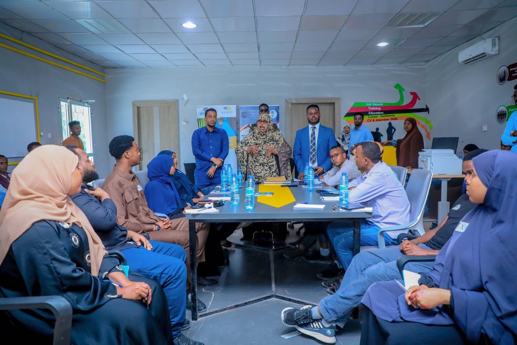 Wasiir Ku-xigeenka Wasaaradda Shaqada iyo Arrimaha Bulshada Xukuumadda Federaalka Soomaaliya, Xildhibaan Marwo Aamina Xuseen Cali, ayaa maanta magaalada Muqdisho ka daah-furtay Qaybta koowaad ee Tababarka Adeegyada Shaqo-helidda (Employability Service Training) kaas oo lagu qabtay XARUNTA SHAQO ABUURKA QARANKA EE WASAARADDA SHAQADA IYO ARRIMAHA BULSHADA (XFS).