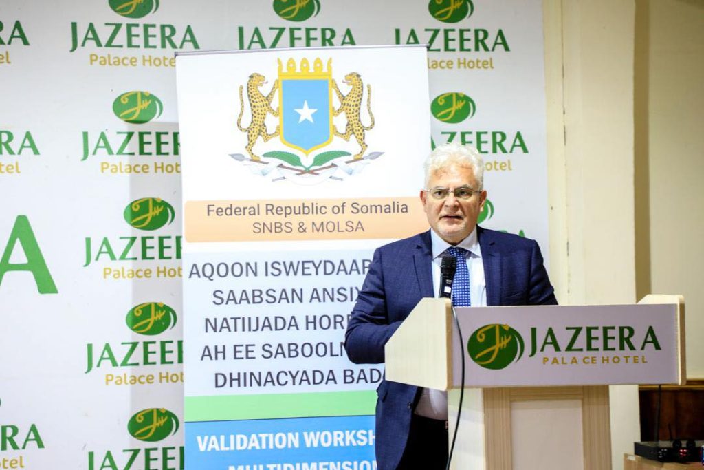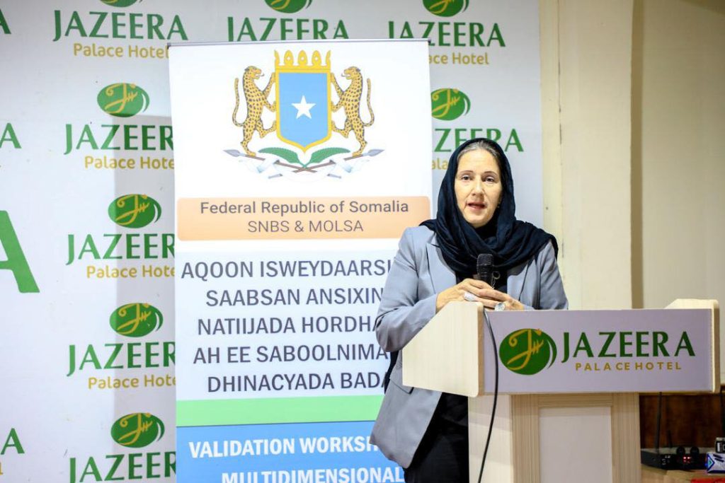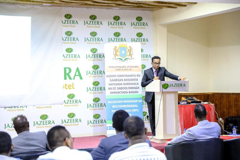 Wasiir-Dowlaha wasaaradda Shaqada iyo Arrimaha Bulshada ee Xukuumadda Federaalka Soomaaliya, mudane xildhibaan Yuusuf Maxamed Aadan ayaa maanta magaaladda Muqdishu ku daahfurey ansixinta aqoon-is-weydaarsiga Warbixinta Tusaha Saboolnimada qeybaheed kala duwan ee heer qaran (National Multidimensional Poverty Index Report (NMPI).