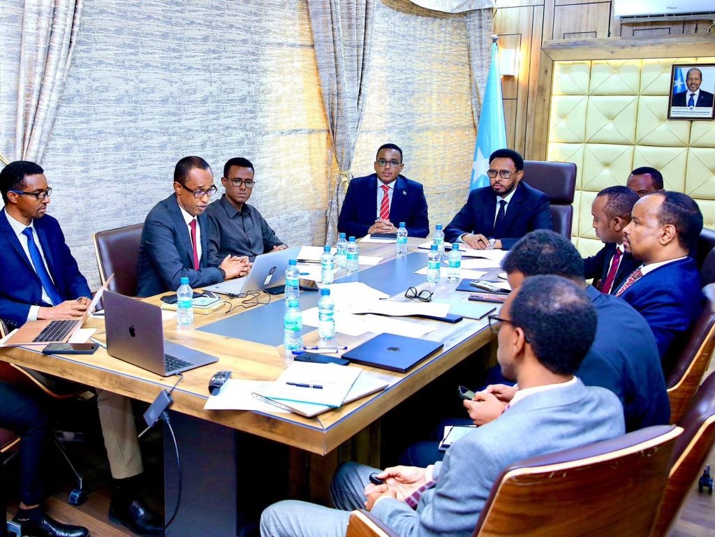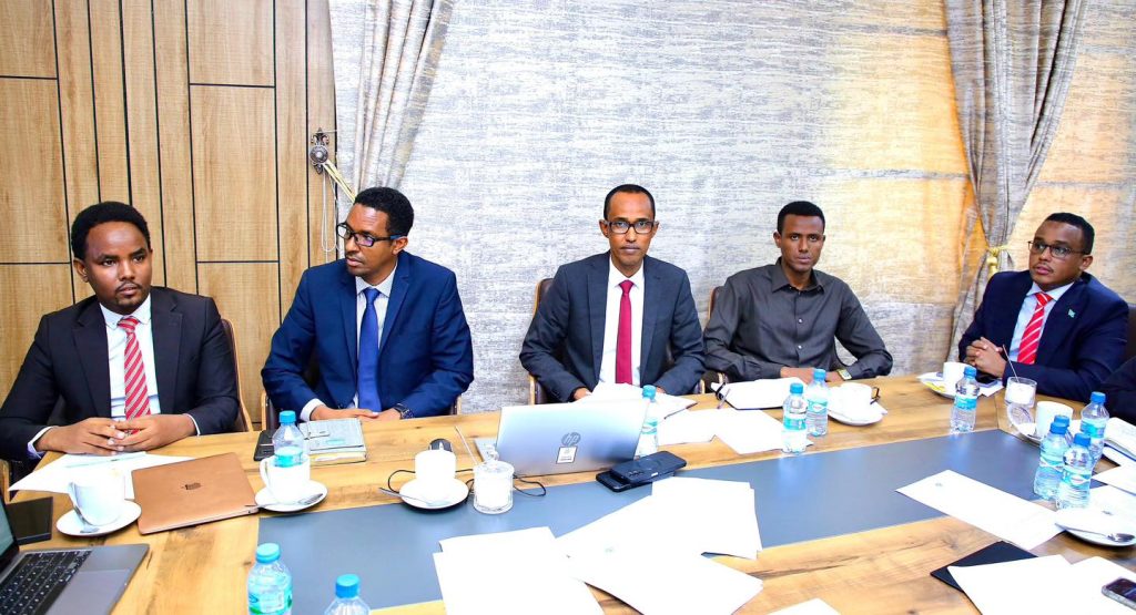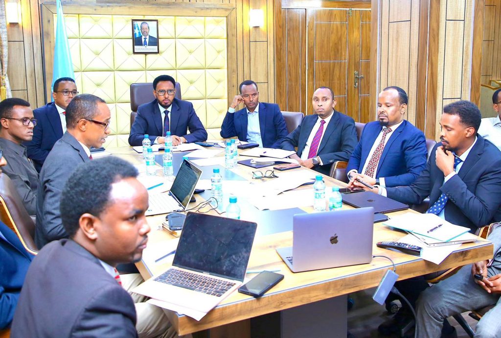 Wasiirka Maaliyadda Xukumadda Federaalka Soomaaliya Mudane Biixi Imaan Cige oo uu weheliyo Wasiirka Shaqada iyo Arrimaha Bulshada XFS Mudane Dr. Maxamed Cilmi Ibraahim, ayaa shir guddoomiyay kulanka Guddiga Dhaqangelinta Siyaasadda Jaangoynta Mushaaraadka iyo Darajooyinka Shaqaalaha Rayidka Dowladda Federaalka Soomaaliya.