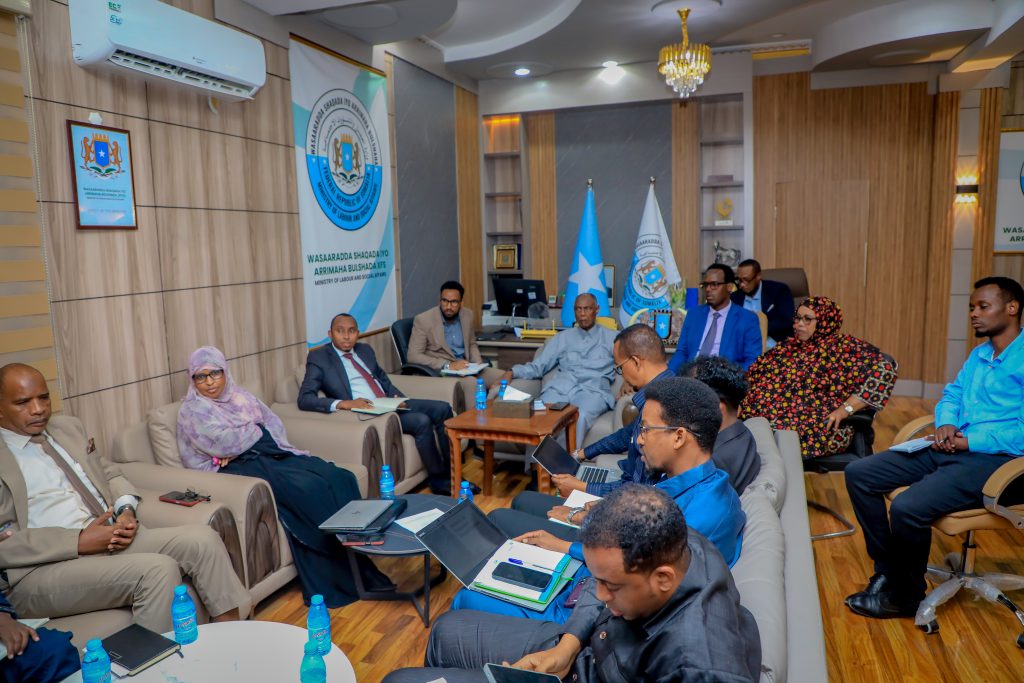 Wasiirka Shaqada iyo Arrimaha Bulshada, Mudane Prof. Saalim Caliyow Ibrow, ayaa kulan la qaatay Agaasimayaasha Waaxyaha iyo Agaasimaha Guud.