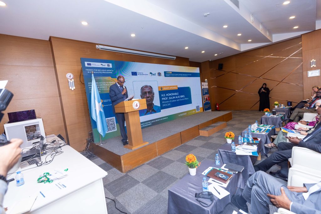 Wasiirka Wasaaradda Shaqada & Arrimaha Bulshada XFS, Mudane. Prof. Salim Caliyo Ibraw, ayaa ka qayb galay Munaasabad heer sare ah oo diiradda lagu saarayey sidii loo horumarin lahaa helitaanka maaliyadda ee ganacsiyada yaryar iyo kuwa dhexdhexaadka ah (MSMEs) iyo qaybaha wax-soo-saarka ee Soomaaliya, ayaa lagu qabtay magaalada Muqdisho.