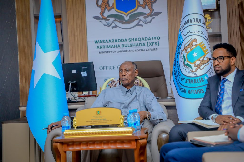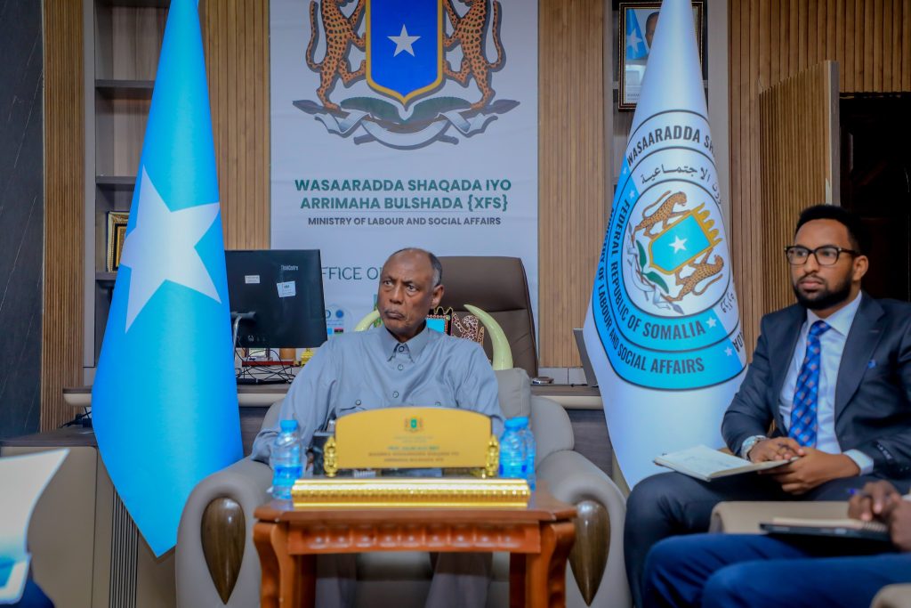 Wasiirka Wasaaradda Shaqada iyo Arrimaha Bulshada JFS Prof. Salim Caliyow Ibrow, ayaa maantay Warbixin ka dhageystay Howlwadeenada Mashruuca Xirfadaha, Shaqo Abuurka iyo Kordhinta wax soo saarka Dhalinyarada ee SEIP.