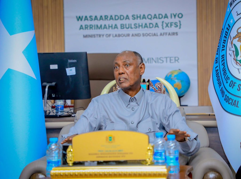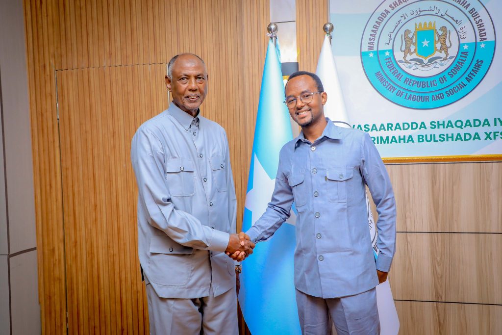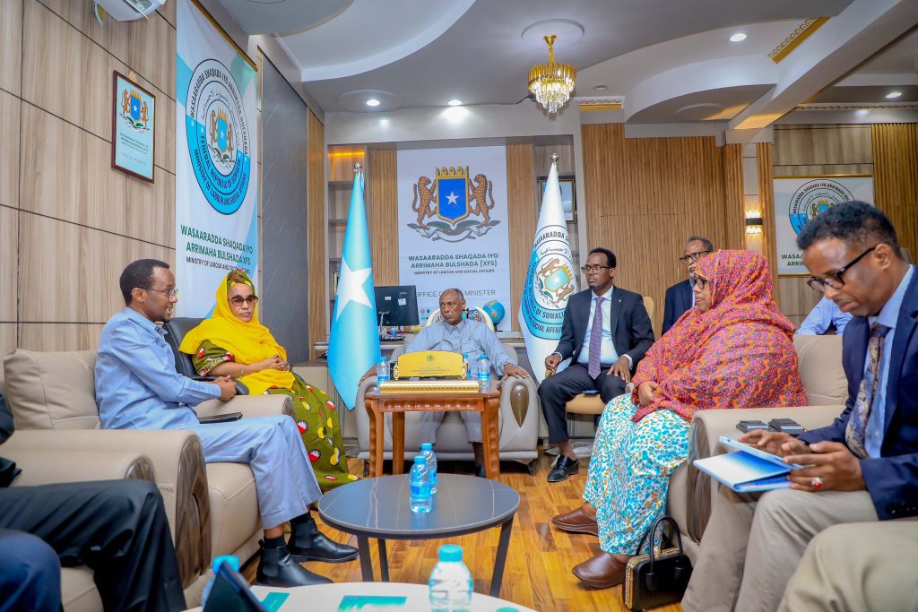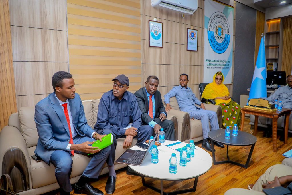 Wasiirka wasaaradda Shaqada iyo Arrimaha Bulshada JFS, Prof. Salim Caliyow Ibrow, ayaa maanta xafiiskiisa ku qaabilay Guddiga Shaqaalaha Rayidka Dowladda Federaalka Soomaaliya (NCSC).