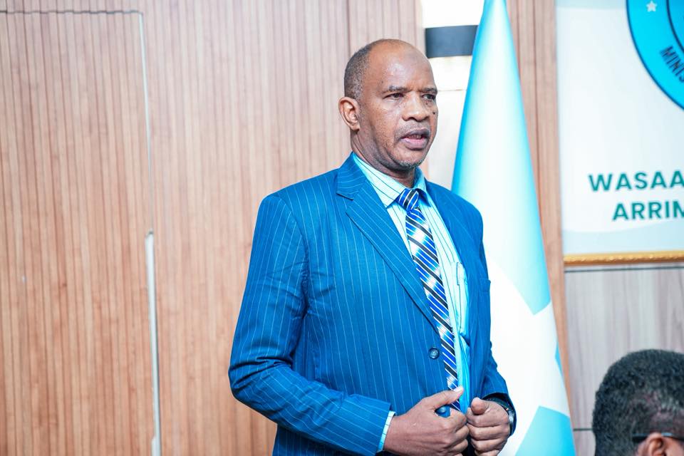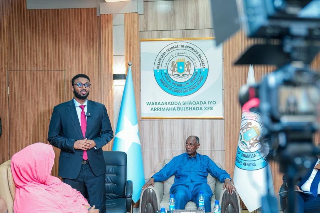 Wasiirka Wasaaradda Shaqada iyo Arrimaha Bulshada ee Xukuumadda Federaalka Soomaaliya, Mudane Prof. Salim Alio Ibrow, ayaa maanta si rasmi ah xilka Agaasimaha Guud ee Wasaaradda ugu kala wareejiyay Agaasimihii hore, Mudane Yusuf Hassan Isack, iyo Agaasimaha cusub, Mudane Maxamed Saney Dalmar.