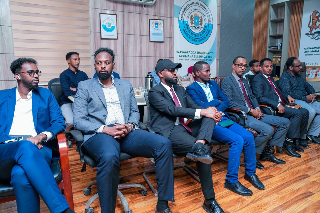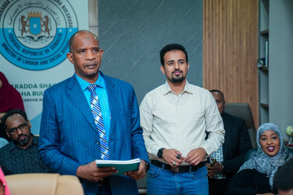 Munaasabadda xil wareejinta oo ka dhacday xarunta dhexe ee Wasaaradda, ayaa waxaa goob joog ka ahaa masuuliyiin sare oo ka tirsan Wasaaradda Shaqada iyo Arrimaha Bulshada.