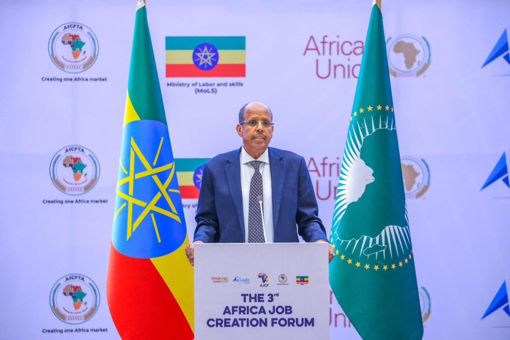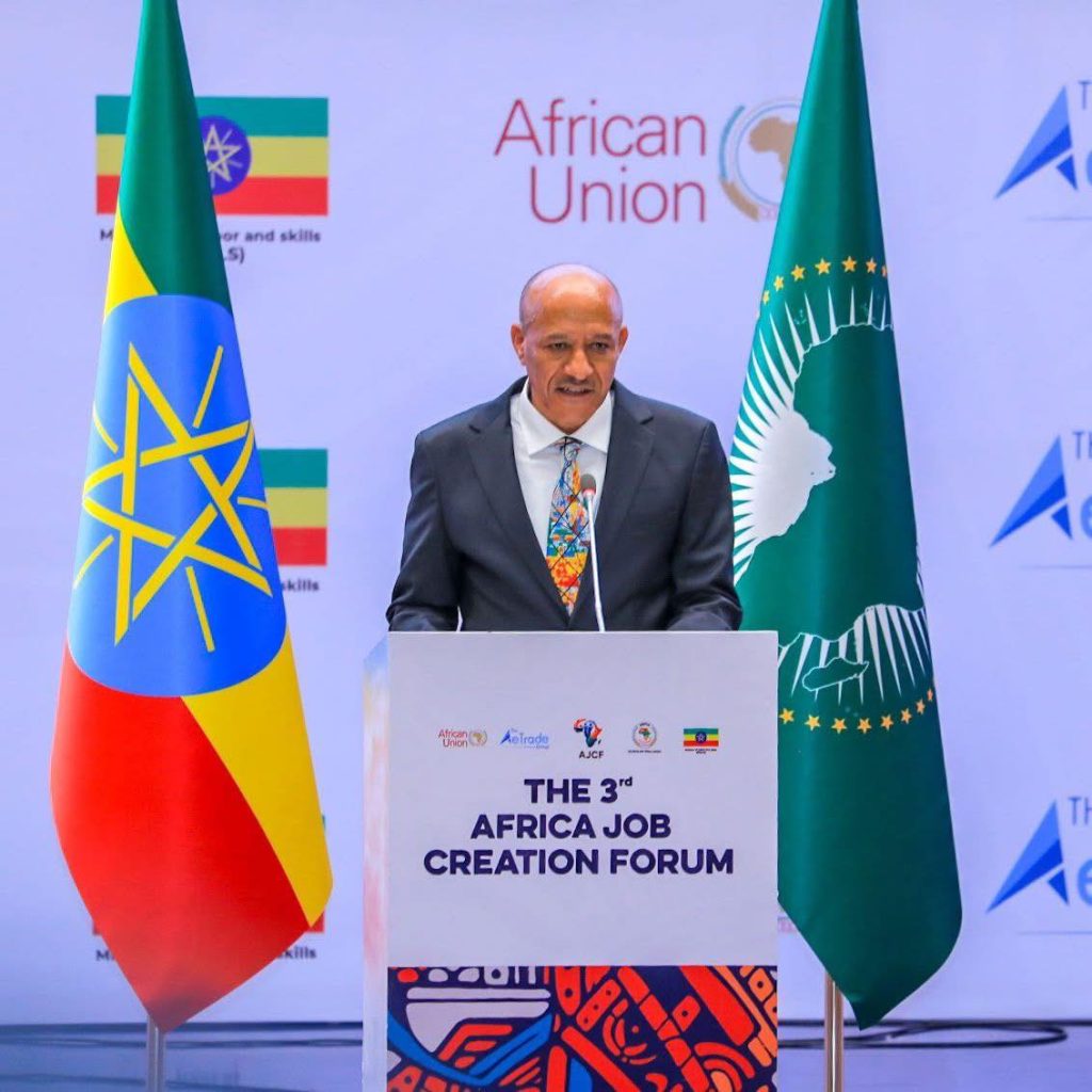 Wasiirka Shaqada iyo Arrimaha Bulshada ee Xukuumadda Federaalka Soomaaliya, Mudane Xildhibaan Yusuf Mohamed, ayaa maanta magaalada Addis Ababa uga qaybgalay Madasha 3aad ee Abuurista Shaqooyinka Afrika, oo si rasmi ah u furay Ra’iisul Wasaare Ku-xigeenka Itoobiya, Mudane Temesgen Tiruneh.