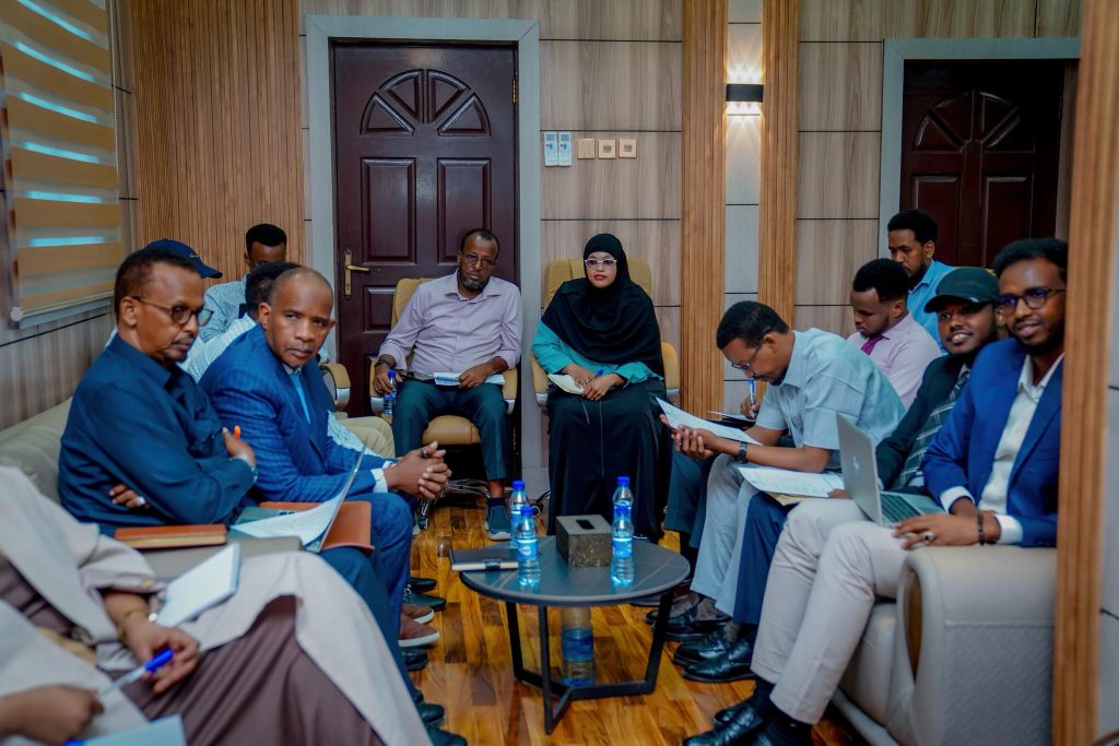 Waxaa manta xafiiska Wasiirka Wasaaradda Shaqada & Arrimaha Bulshada Mudane Prof. Salim Alio Ibro, ku qabsoomay kulan isbarasho iyo is-xog wareysi ah oo u dhexeyay Agaasimaha guud iyo Agaasimayaasha waaxyaha iyo qaar kamid ah Maareeyayaasha Mashaariicda ee Wasaaradda.