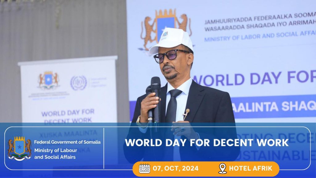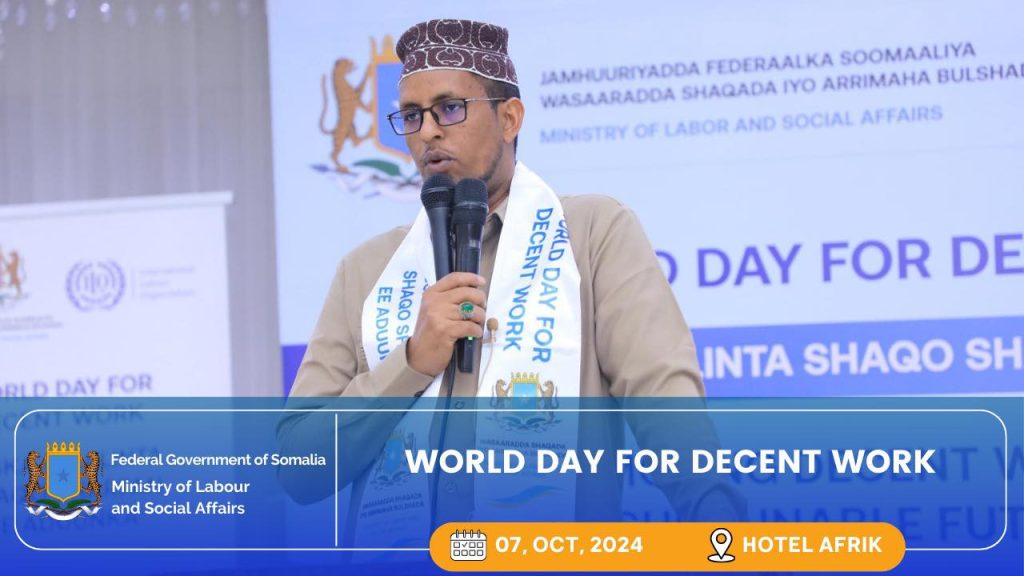 Wasaaradda Shaqada iyo Arrimaha Bulshada Ee Jamhuuriyadda Federaalka Soomaaliya ayaa maanta magaaladda Muqdishu ku qabatay Munaasabad ballaaran oo lagu xusaayay Maalinta Shaqada Hufan ee Adduunka oo sanad walba maanta oo kale Caalamka laga xuso, ayadoo sanadkan halku dhiggu ahaa “ kor u qaadida shaqo hufan iyo dhisidda mustaqbal waara ee loo dhanyahay”.